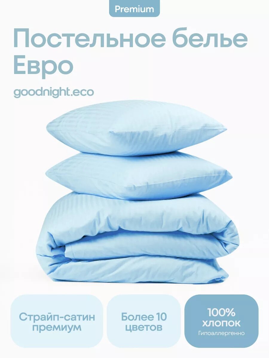 Постельное белье GoodNight Страйп-сатин евро (с нав. 50х70) голубой