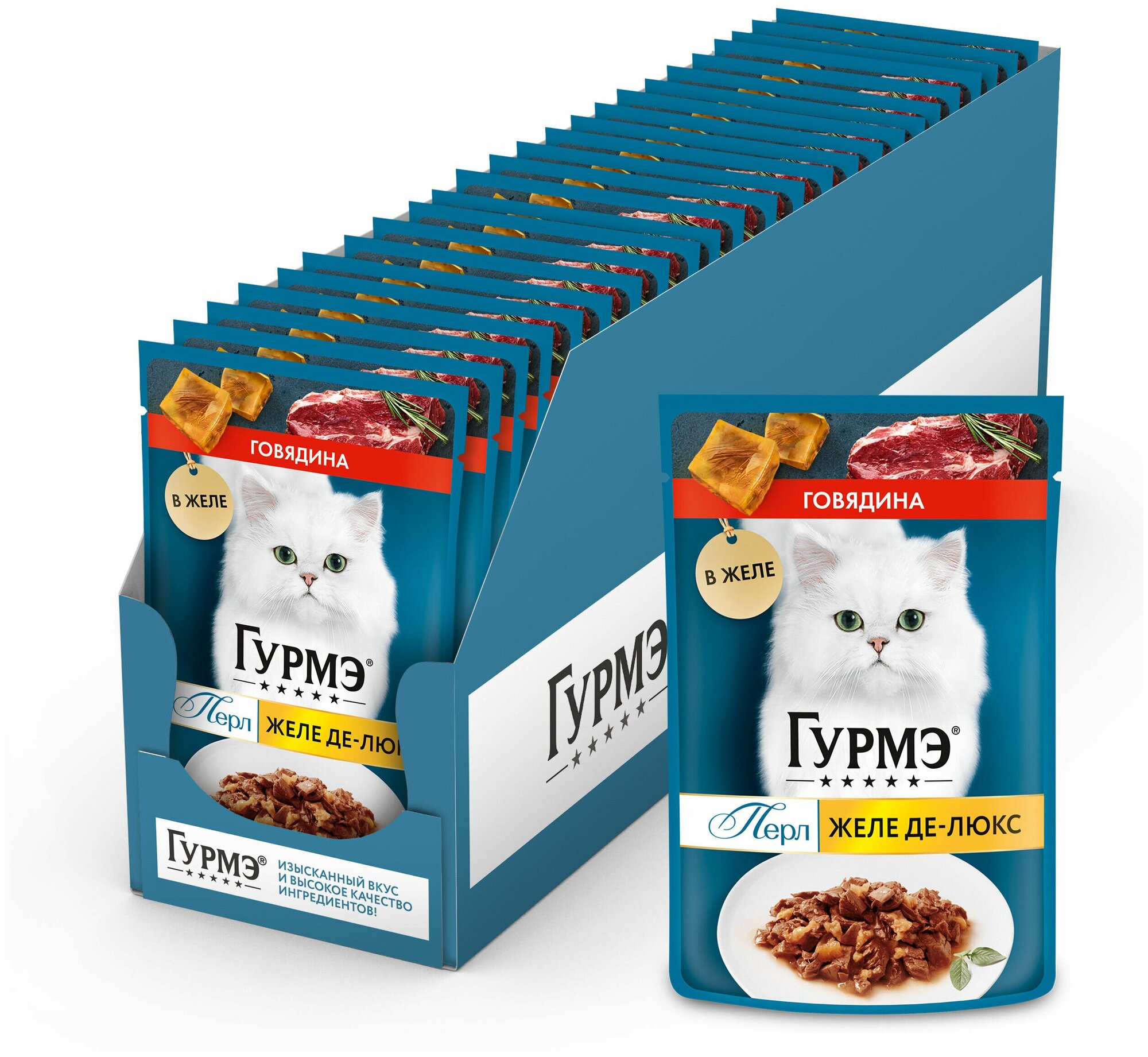 Влажный корм Гурмэ Перл Соус Де-люкс для кошек, с говядиной в роскошном соусе, Пауч, 75 г х 26 шт