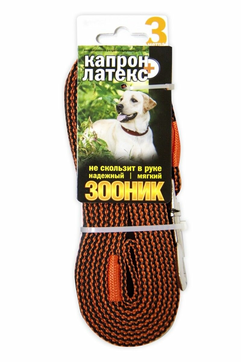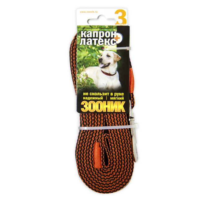Купить Поводок (Зооник) 3м*20мм, капрон с двойной латексной нитью, оранжевый