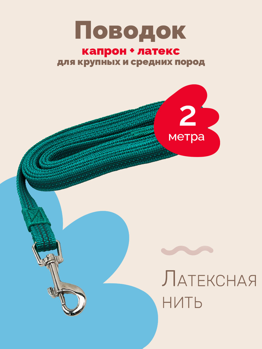 Зооник Поводок капроновый с латексной нитью 2м х 20мм, Зеленый