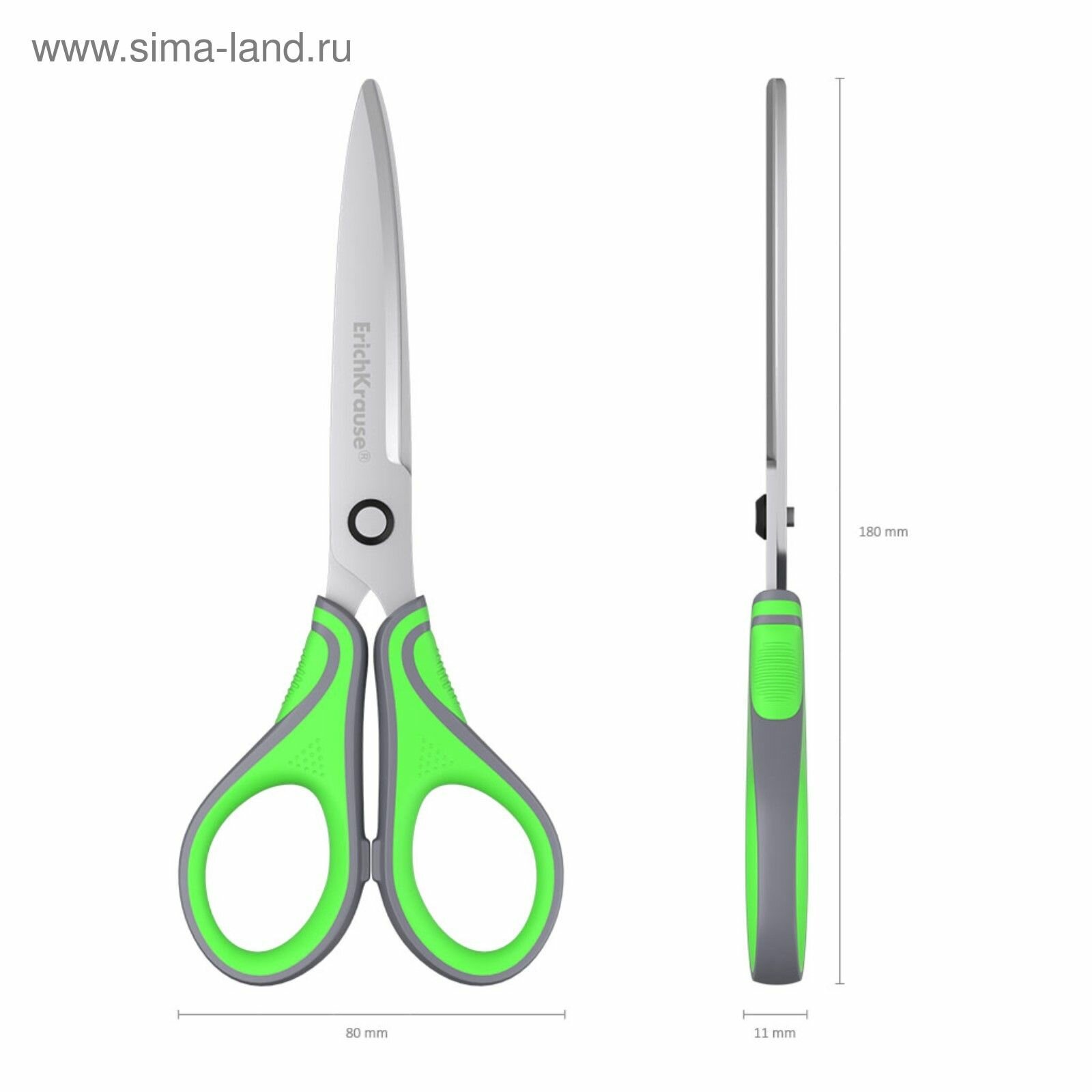 Купить Ножницы 18см пластиковые прорезиненные ручки серо-зелёные "Megapolis"