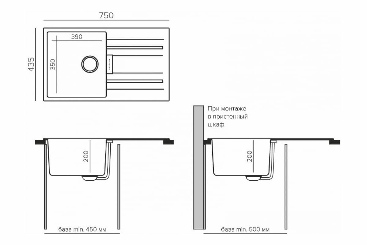 Мойки Tolero Loft TL-750, мойка, гранит, черный 911