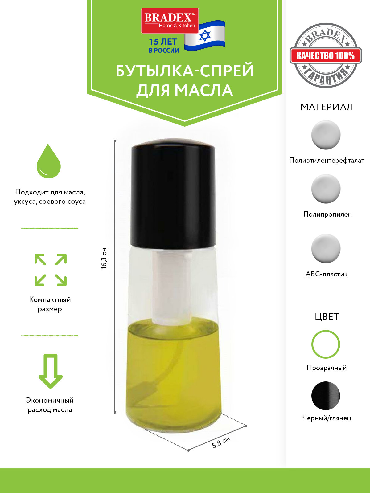 Купить BRADEX Бутылка-спрей для масла TK 0283, 160 мл, прозрачный/черный