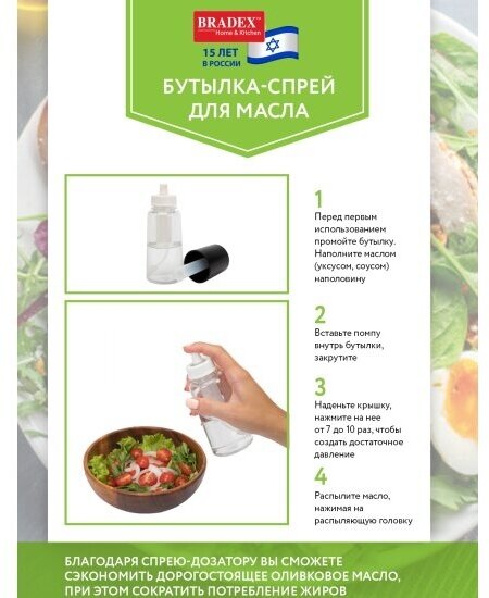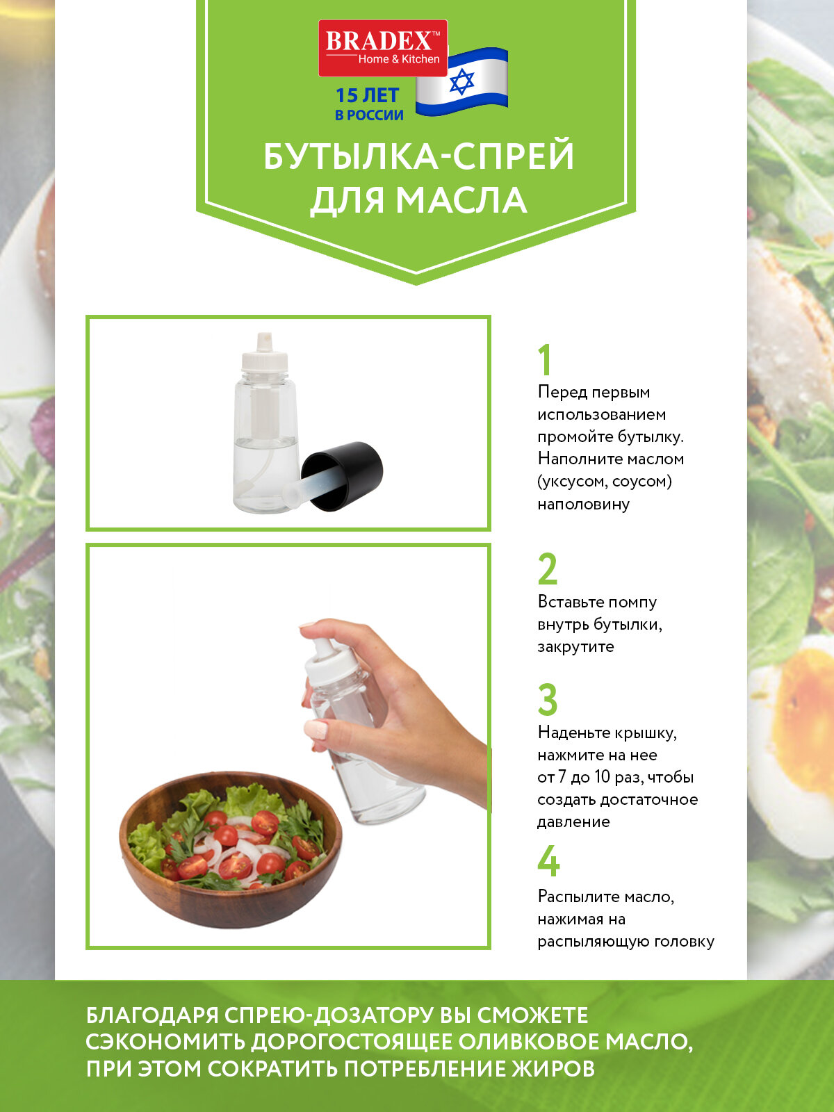 Распылитель для масла, уксуса с дозатором BRADEX, пульверизатор разбрызгиватель, емкость 160 мл