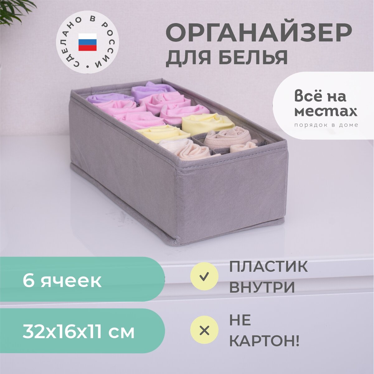 | Плюсы: | Мне нравится размер ячеек. Идеально для хранения взрослых и детских футболок, штанишек |