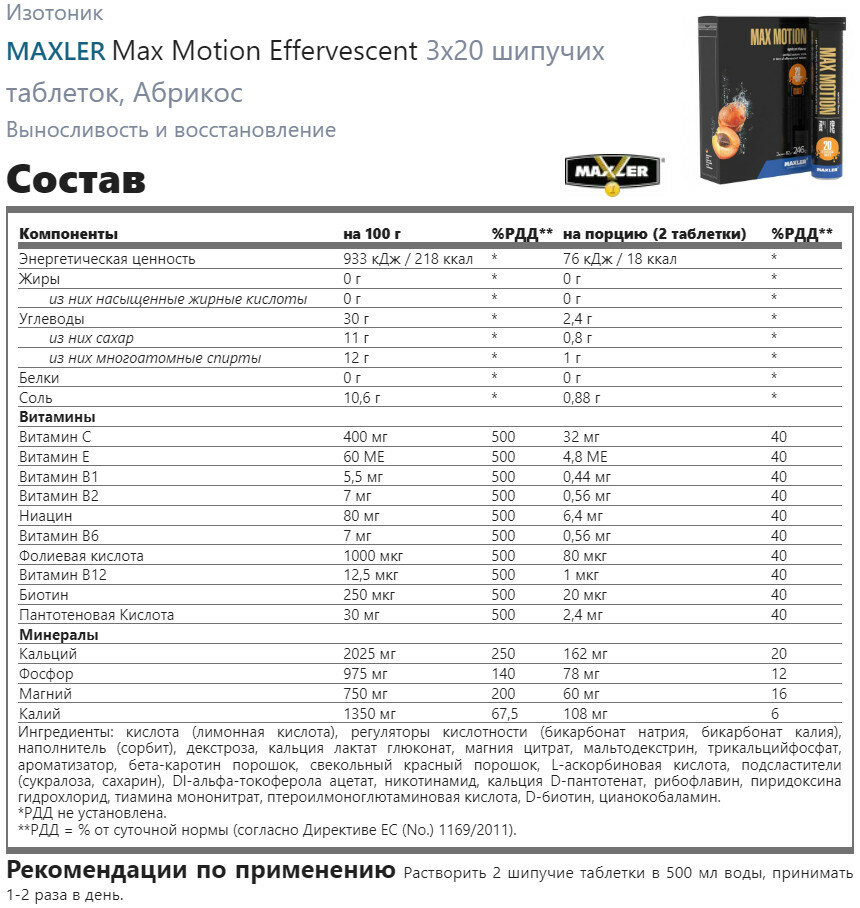 СохранитьИзотоник Maxler Max Motion, шипучие витамины и минералы ( 3 тубы по 20 штук ) - Абрикос интересное:
