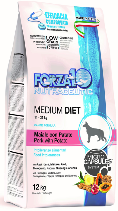 Сухой корм Forza10 DIET Adult Medium al Maiale&Patate, для взрослых собак средних пород из свинины и картофеля, 12кг