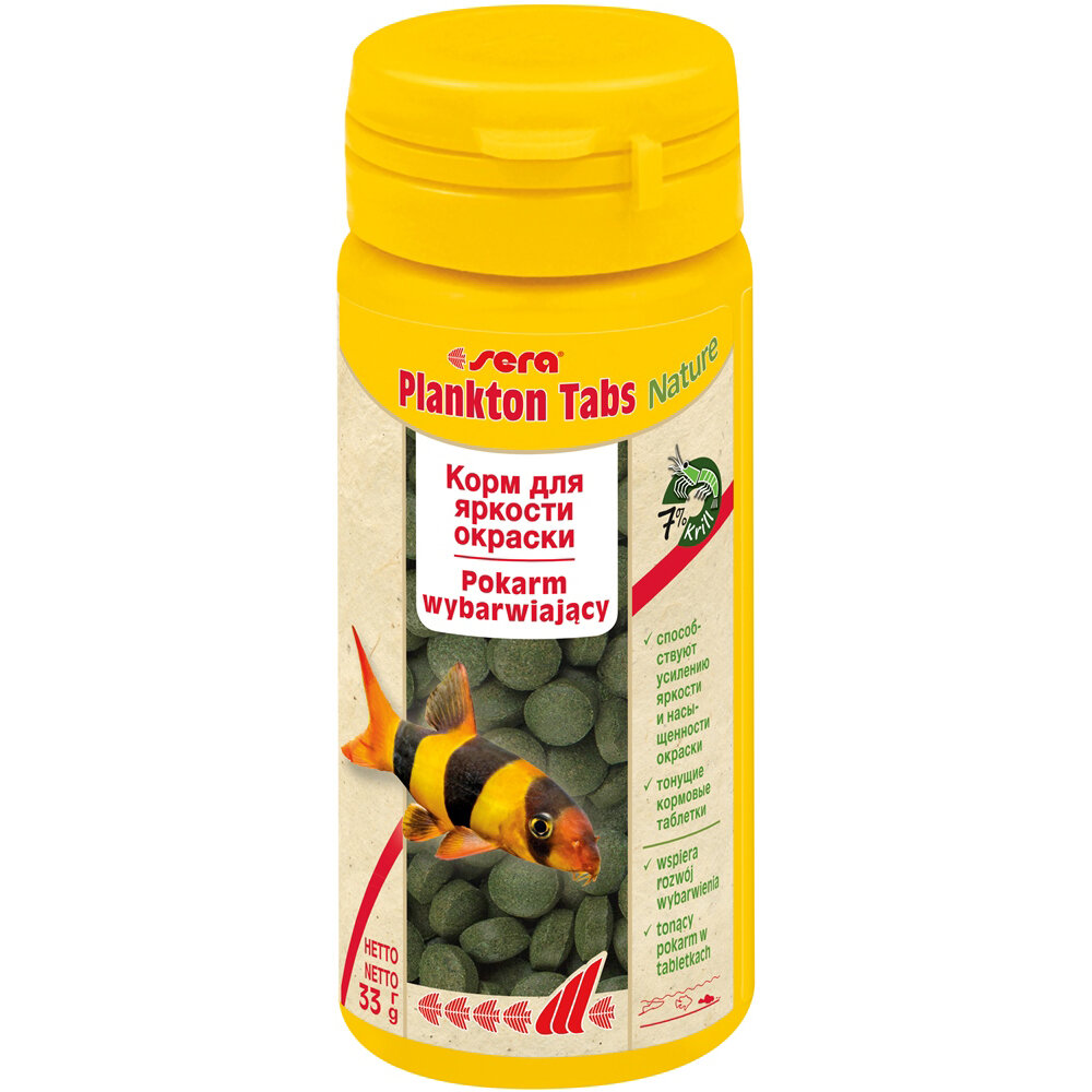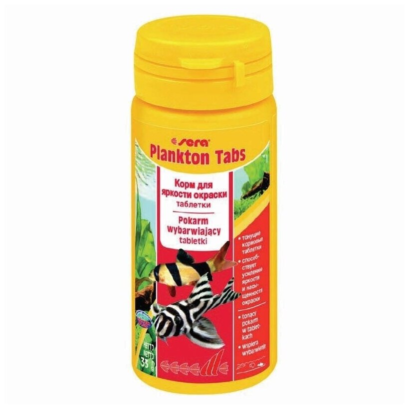 Корм для сомов и донных рыб Sera Plankton Tabs для улучшения окраса, в виде таблеток, 65 гр