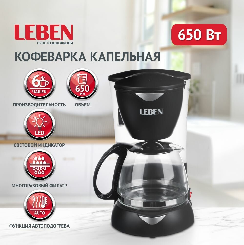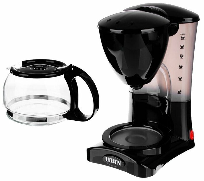 Ниже Вы можете прочитать отзывы на LEBEN Кофеварка капельная 550Вт, стеклянная колба 0,6л, ознакомится с подробными характеристиками, посмотреть интересные обзоры и фотографии на LEBEN Кофеварка капельная 550Вт, стеклянная колба 0,6л.