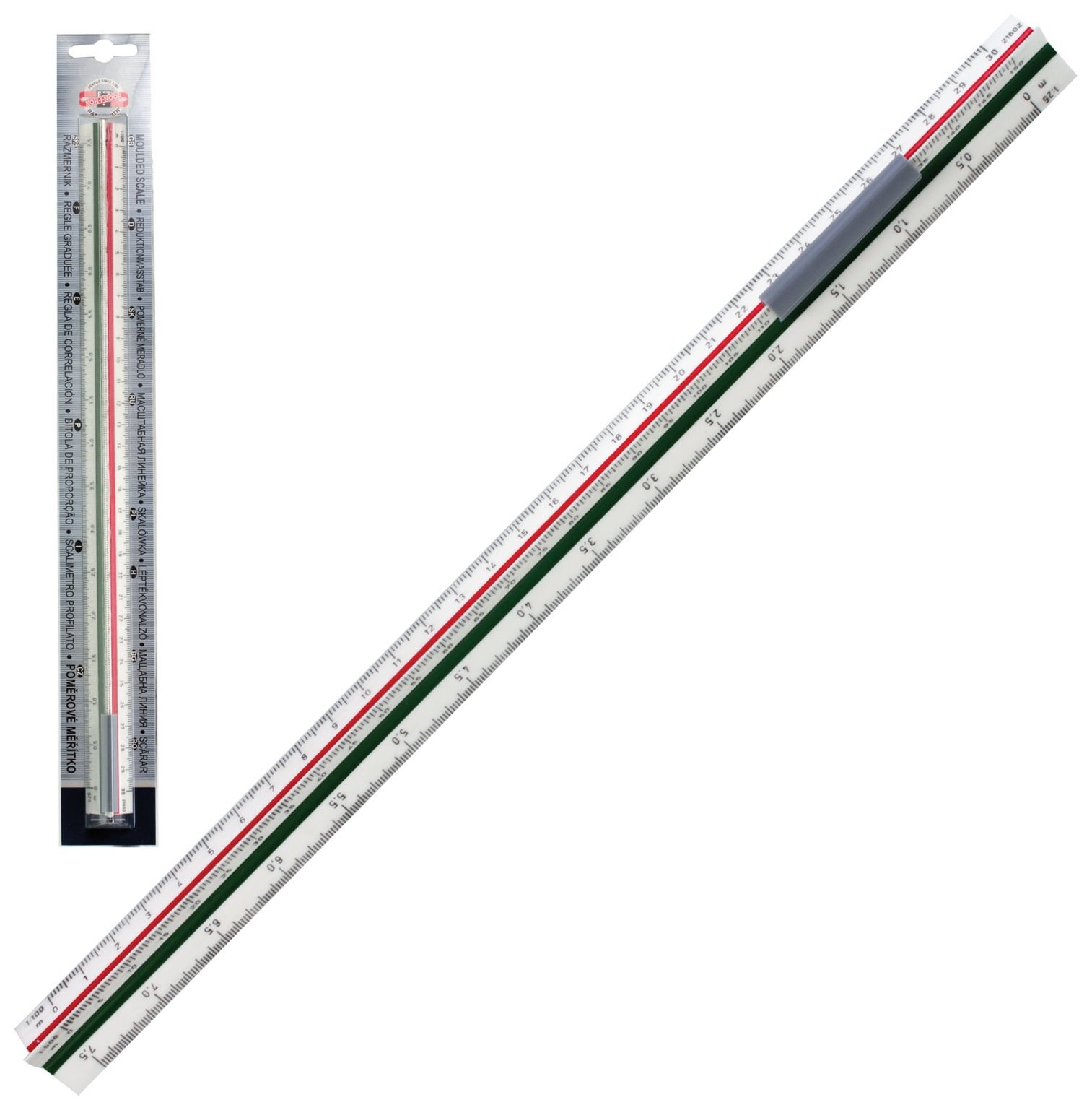 Линейка масштабная KOH-I-NOOR 30 см, трехгранная, с держателем, в блистере (71500400000)