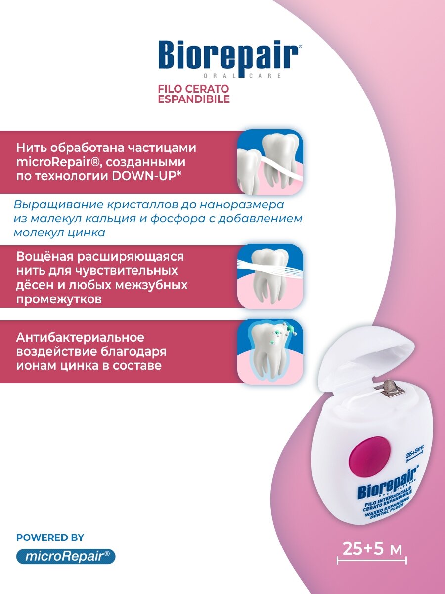 Купить Зубная нить Biorepair Espandibile расширяющаяся вощеная, 30 м