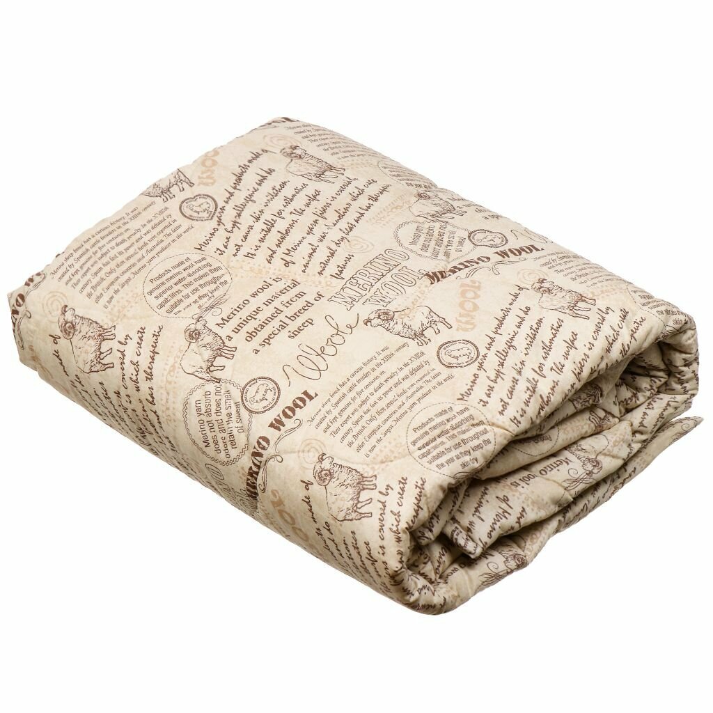 Одеяло 1.5-спальное, 140х205 см, Меринос, Овечья шерсть, всесезонное, чехол 100% хлопок, кант, Волшебная ночь