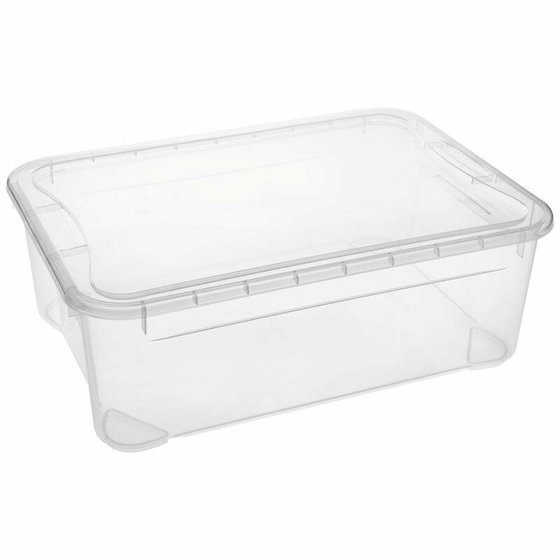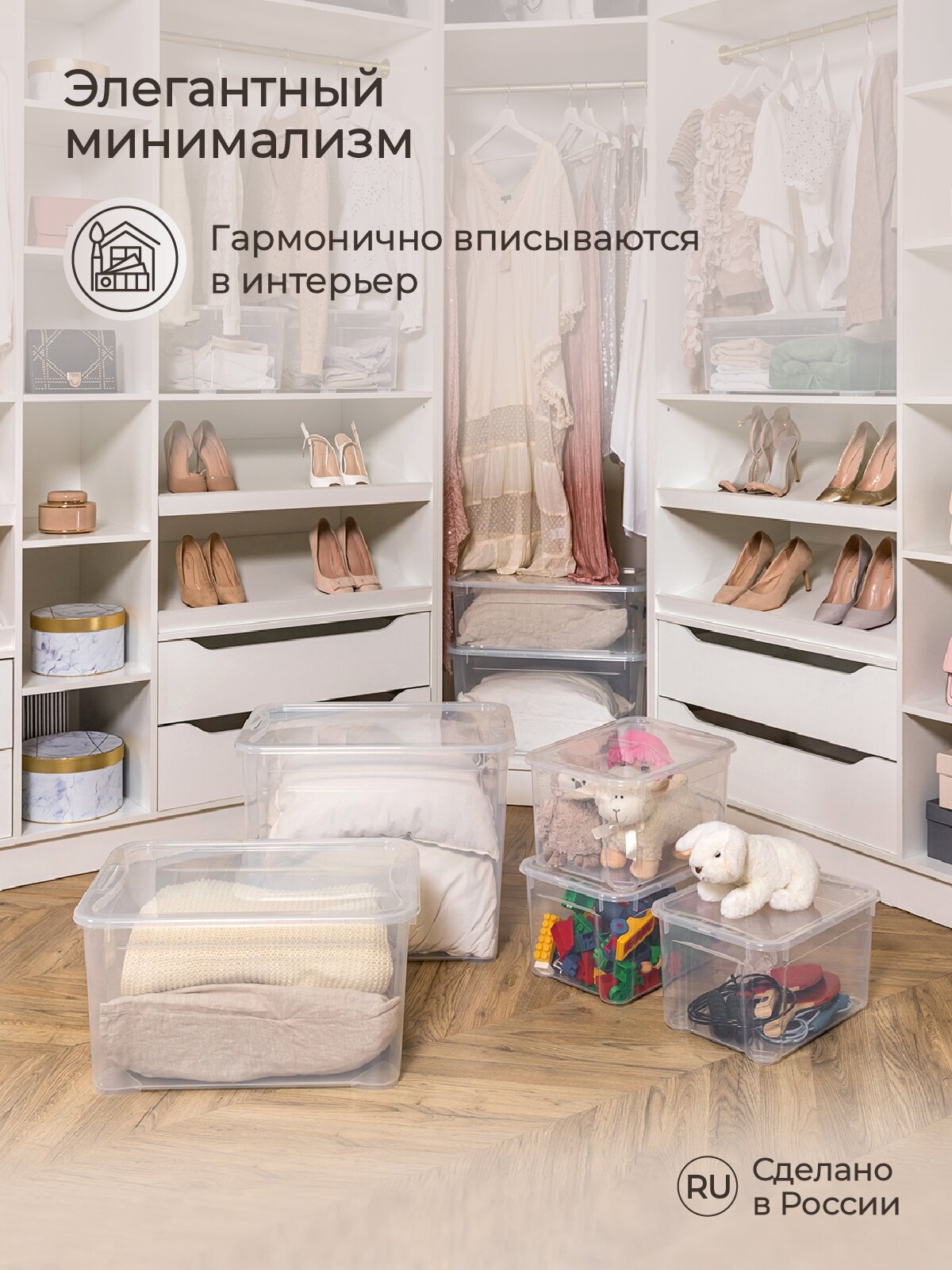Ящик для хранения Econova / Эконова Кристалл M с крышкой, из полипропилена, прозрачный, 555х390х190мм, 31л / органайзер для вещей