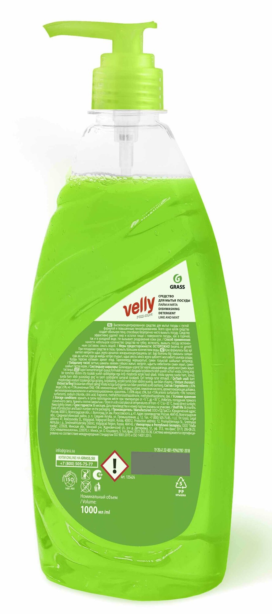 Ниже Вы можете прочитать отзывы на Grass : 125424 Средство для мытья посуды "Velly" Premium лайм и мята (флакон 1000 мл), ознакомится с подробными характеристиками, посмотреть интересные обзоры и фотографии на Grass : 125424 Средство для мытья посуды "Velly" Premium лайм и мята (флакон 1000 мл).