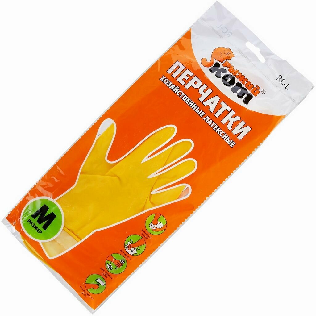 Перчатки Рыжий кот латексные RC-L , 1 пара, размер M, цвет желтый
