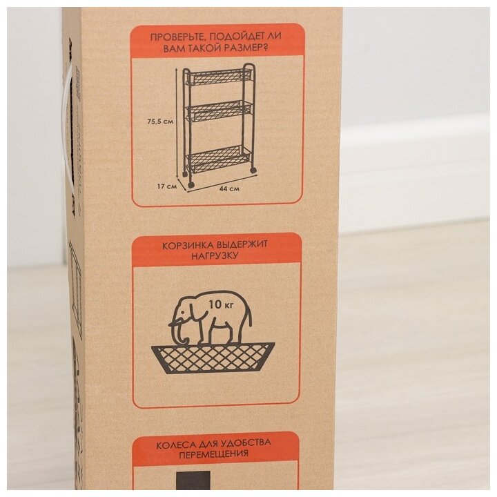 ЗМИ (Завод металлических изделий ООО) Этажерка ЗМИ Ладья 1К, 3 корзины, 44 x 17 x 75,5 см, на колесах, черная