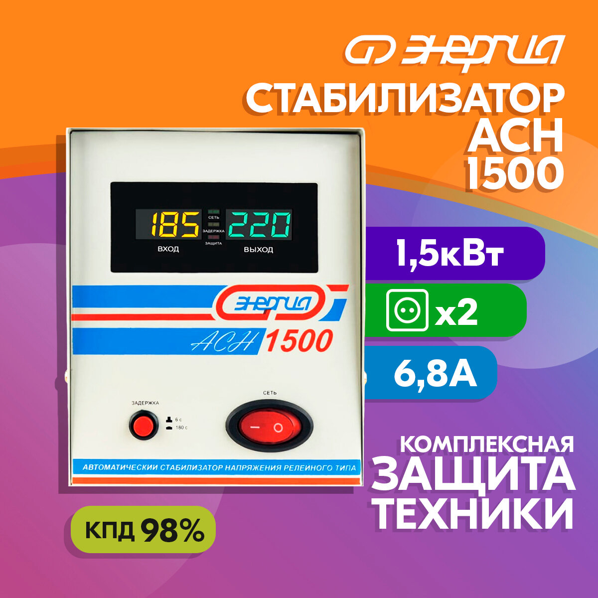 Cтабилизатор с цифровым дисплеем Энергия АСН-1500 Е0101-0125 .