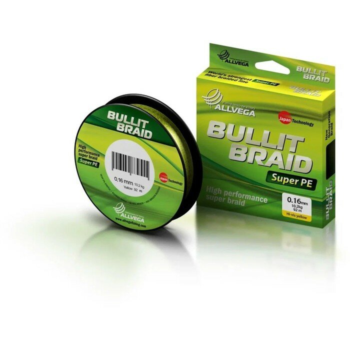 Плетеный шнур Allvega Bullit Braid 92м 0,16мм 10,2кг, ярко-желтая