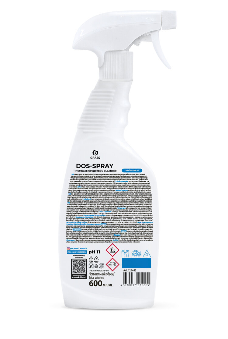 Универсальное чистящее средство GRASS Dos-spray Prof, щелочное, дезинфицирующее, 0,6 л
