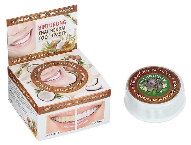 Binturong Зубная паста Binturong Coconut Thai Herbal Toothpaste, с кокосовым маслом, 33 г