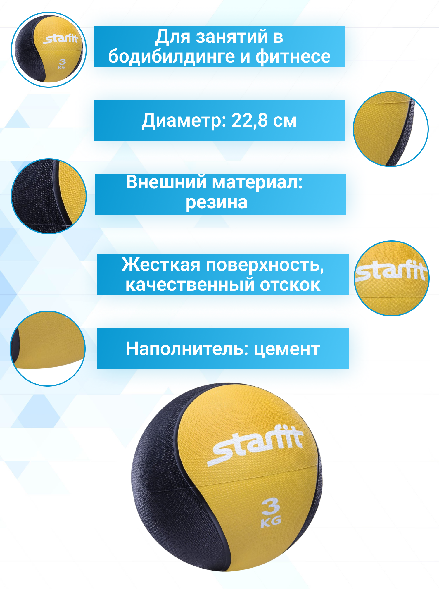Медбол Starfit Gb-702, 3 кг, желтый интересное: