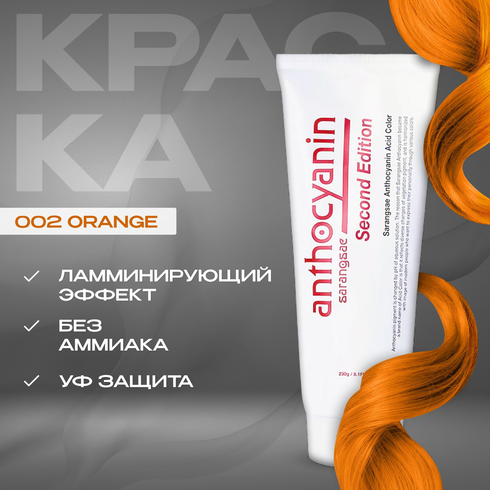 Купить Anthocyanin Оранжевая краска для волос O02 Orange 230 мл профессиональная без аммиака ламинирующая