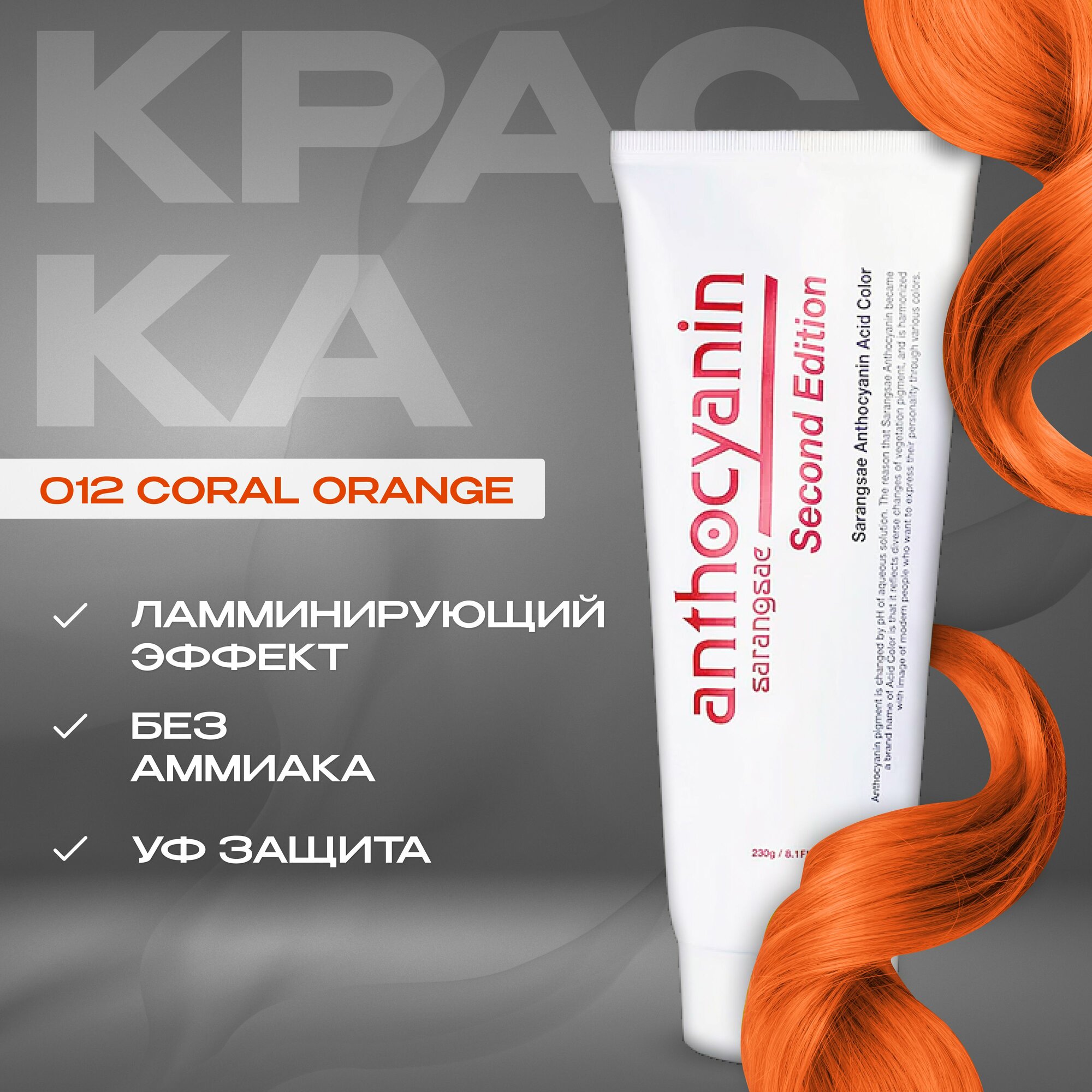 Купить Anthocyanin Оранжевая краска для волос O12 Coral Orange 230 мл профессиональная без аммиака ламинирующая