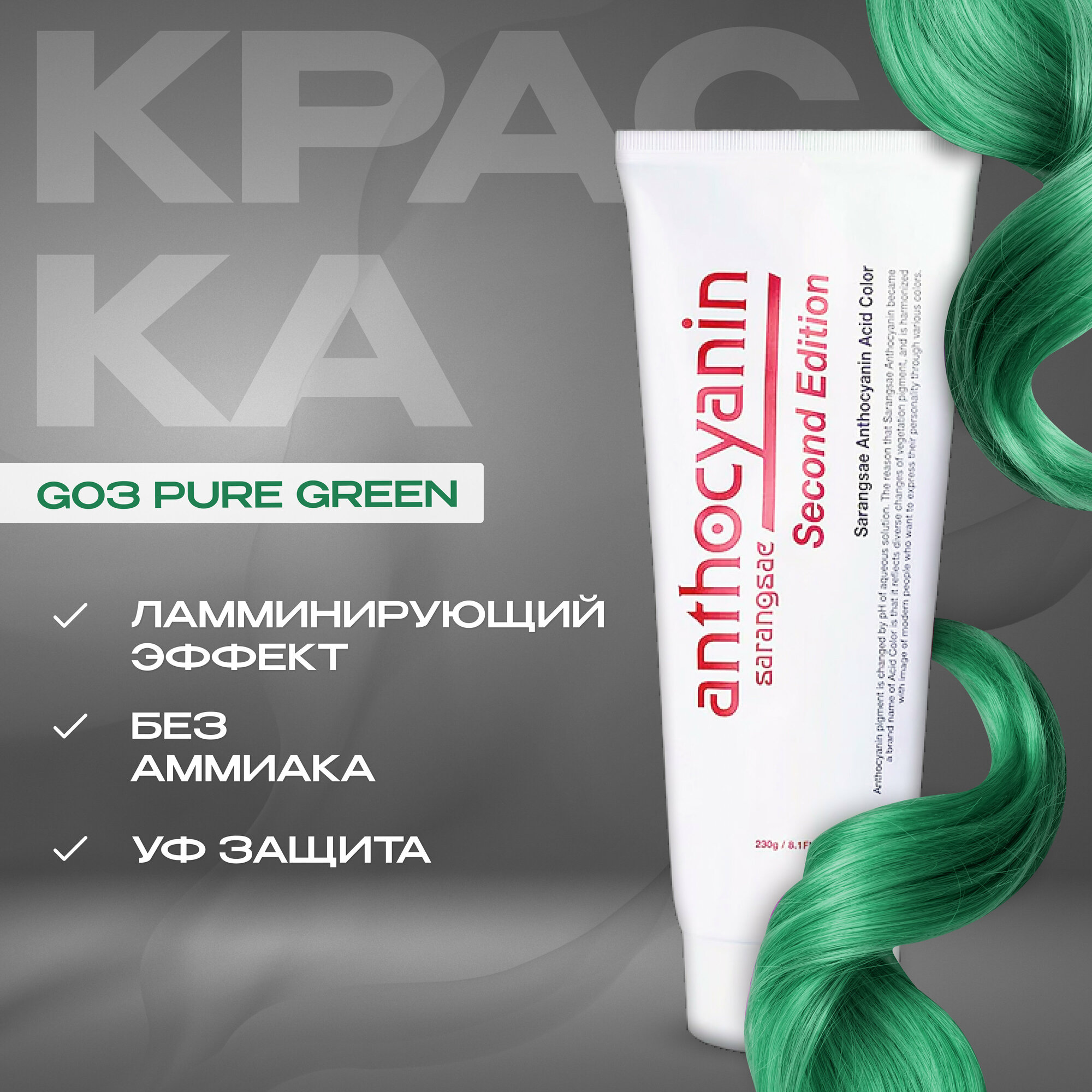Anthocyanin Зеленая краска для волос G03 Pure Green 230 мл профессиональная без аммиака ламинирующая