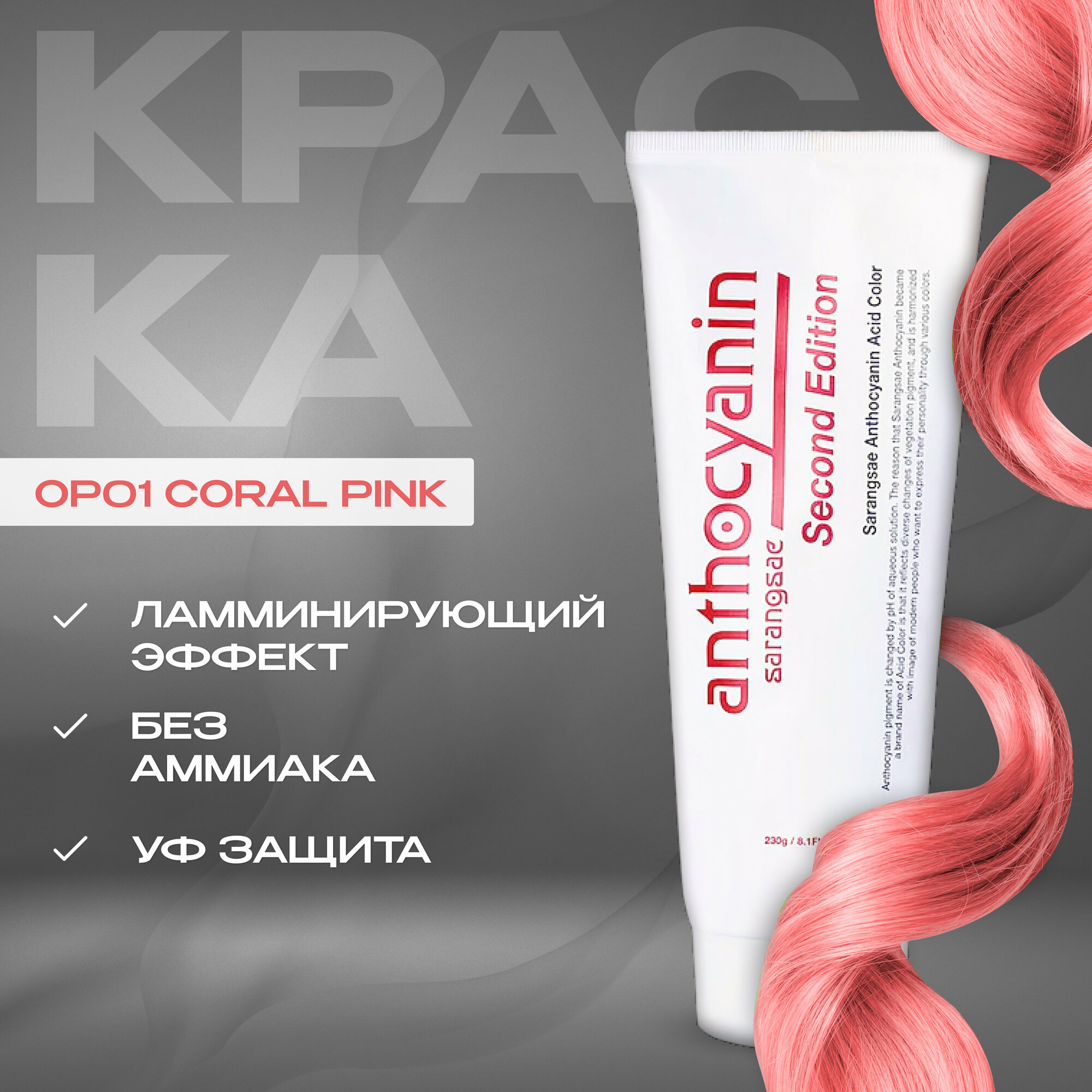 Купить Anthocyanin Розовая краска для волос OP01 Coral Pink 230 мл профессиональная без аммиака ламинирующая