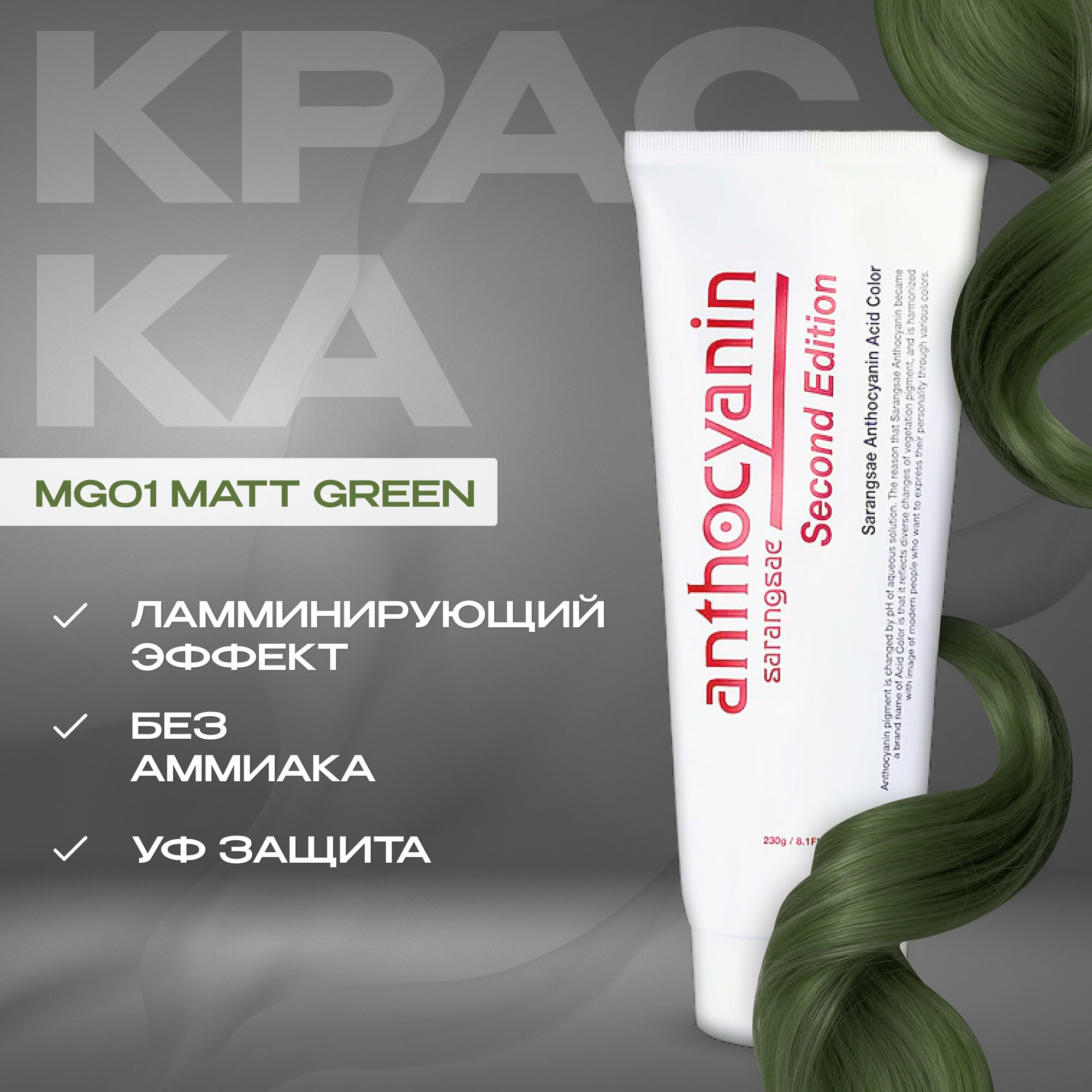 Купить Anthocyanin Серо-зеленая краска для волос MG01 Matt Green 230 мл профессиональная без аммиака ламинирующая