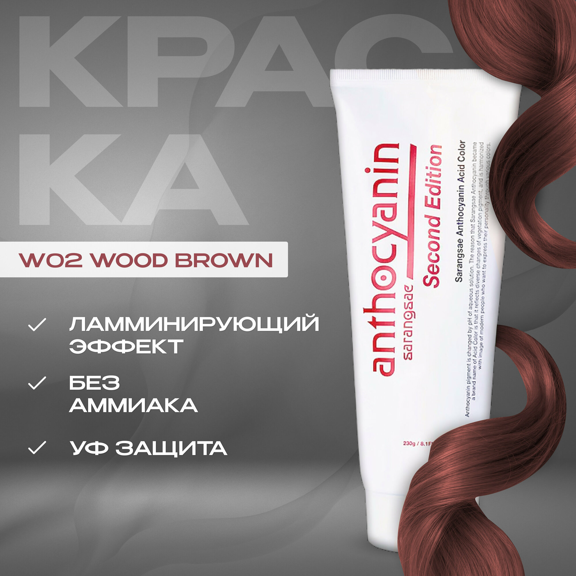 Купить Anthocyanin Коричневая краска для волос W02 - Wood Brown 230 мл профессиональная без аммиака ламинирующая