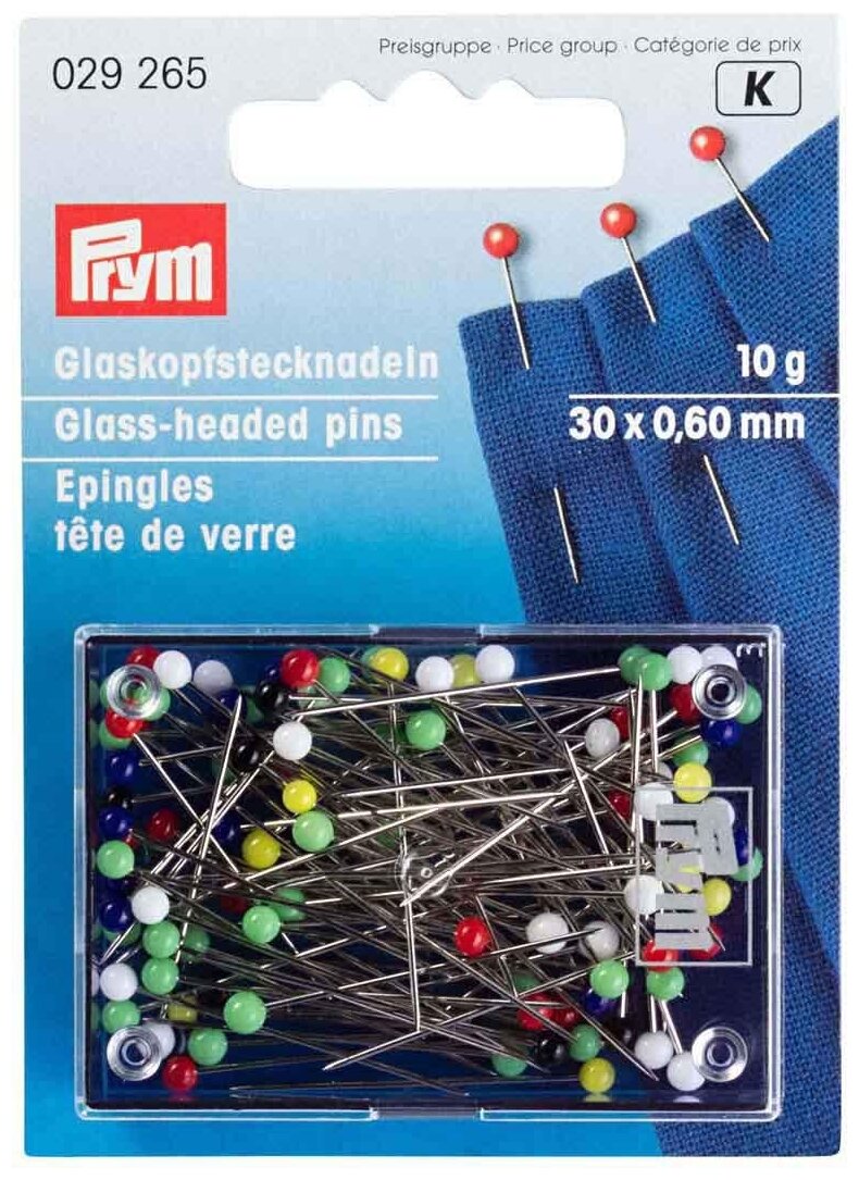 Купить PRYM 029265 Иглы для закалывания шарики стеклянные головки сталь 10 г 30 мм в пластиковой упаковке ассорти