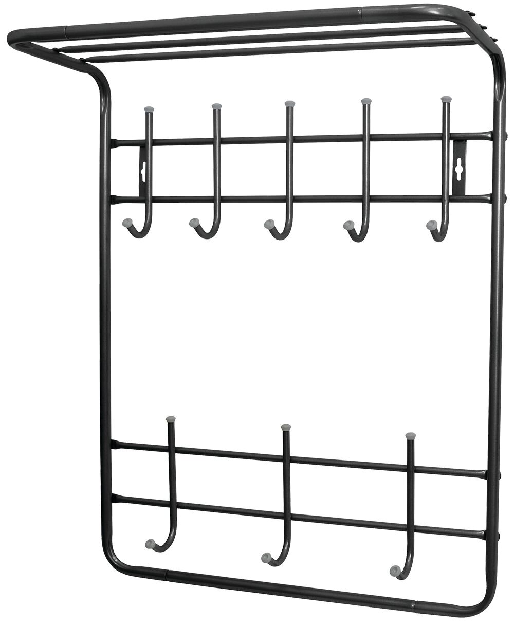 Вешалка настенная с полкой на 8 крючков, 60×25×74,5 см, цвет чёрный