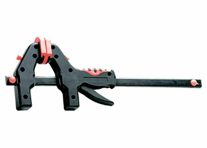 | Плюсы: | Фиксация возможна в любой части струбцины, как в крайнем положении, так и в центральной части. |
