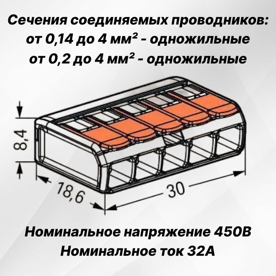 электро соединитель проводов WAGO мини универсальный на 5 зажимной 221-415 ЛОТ 50 шт