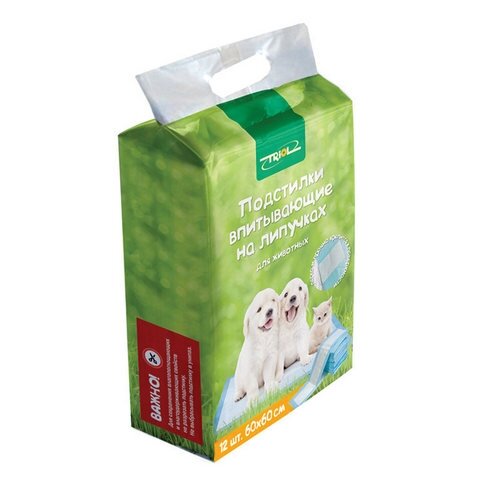 Пеленки впитывающие для собак и кошек Triol, размер 60х60см., 12 шт.