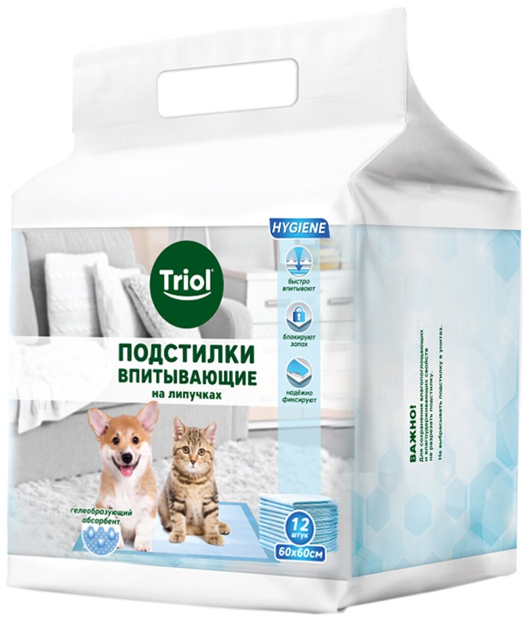 Подстилки для животных впитывающие Triol, 60*60 см, 12 шт, на липучках