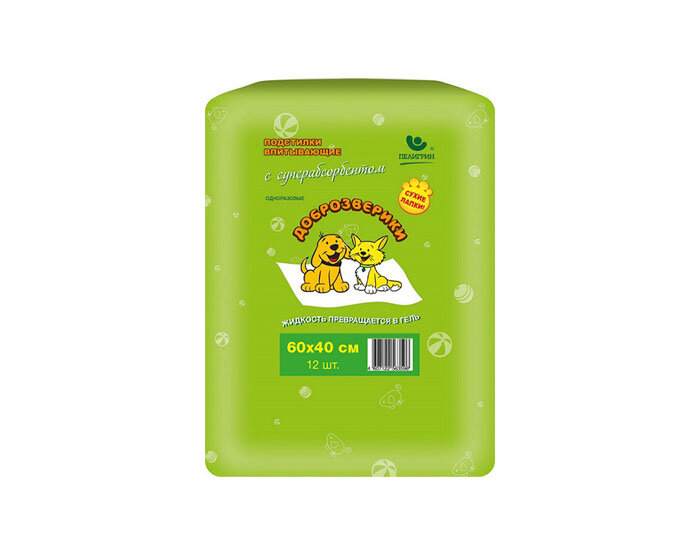 Пеленки для кошек и собак пелигрин впитывающие, с суперабсорбентом, 40х60см 12шт