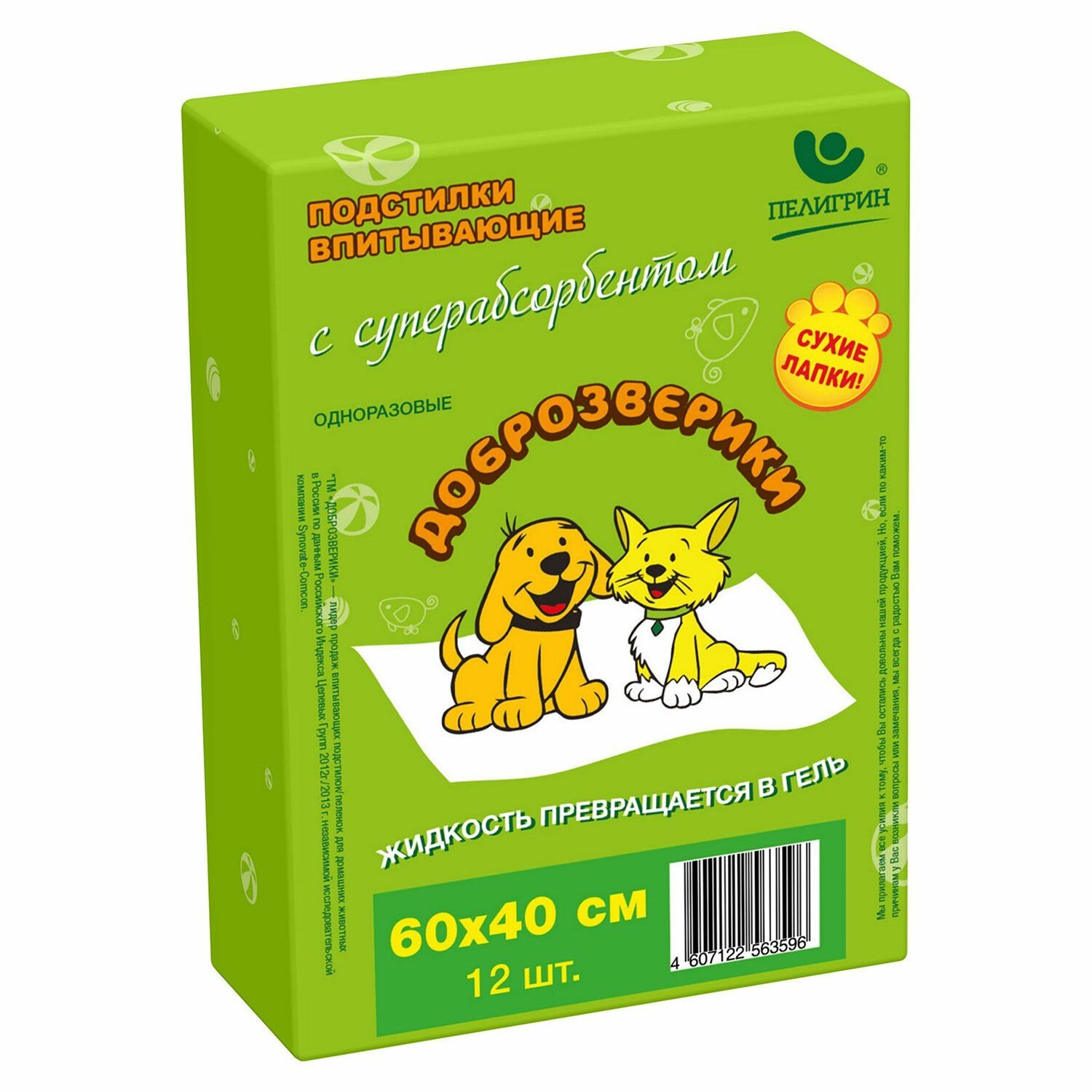 Пелигрин Доброзверики Подстилки впитывающие д/животных с суперабсорбентом 60*40*12шт