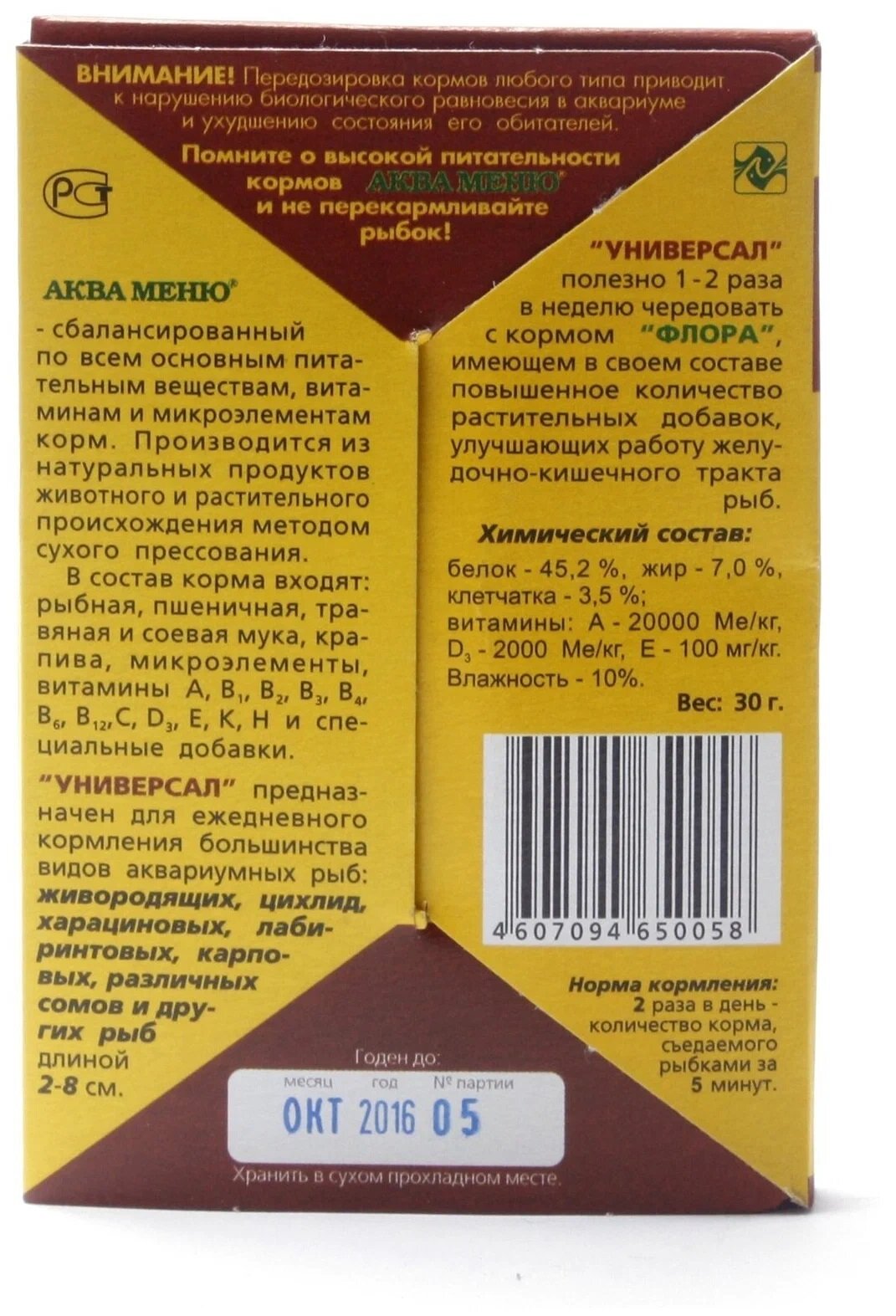 Корм для рыб Аква Меню Универсал, ежедневный, 55 шт., 30 гр (16 штук)