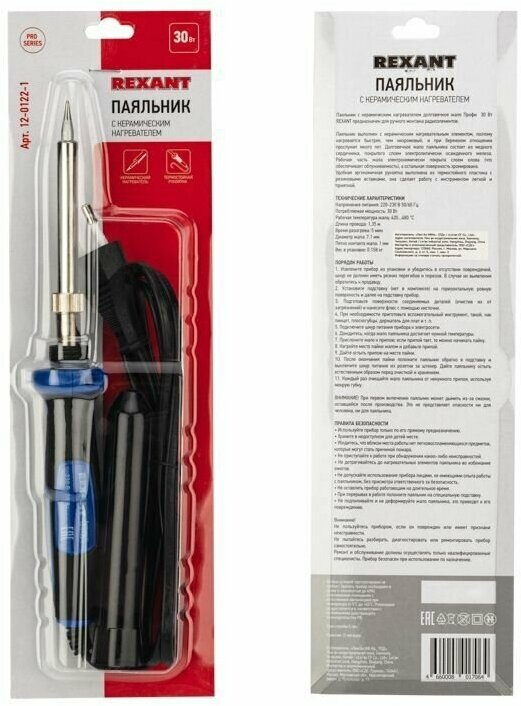 Паяльник Rexant 30 Вт с керамическим нагревателем и долговечным жалом