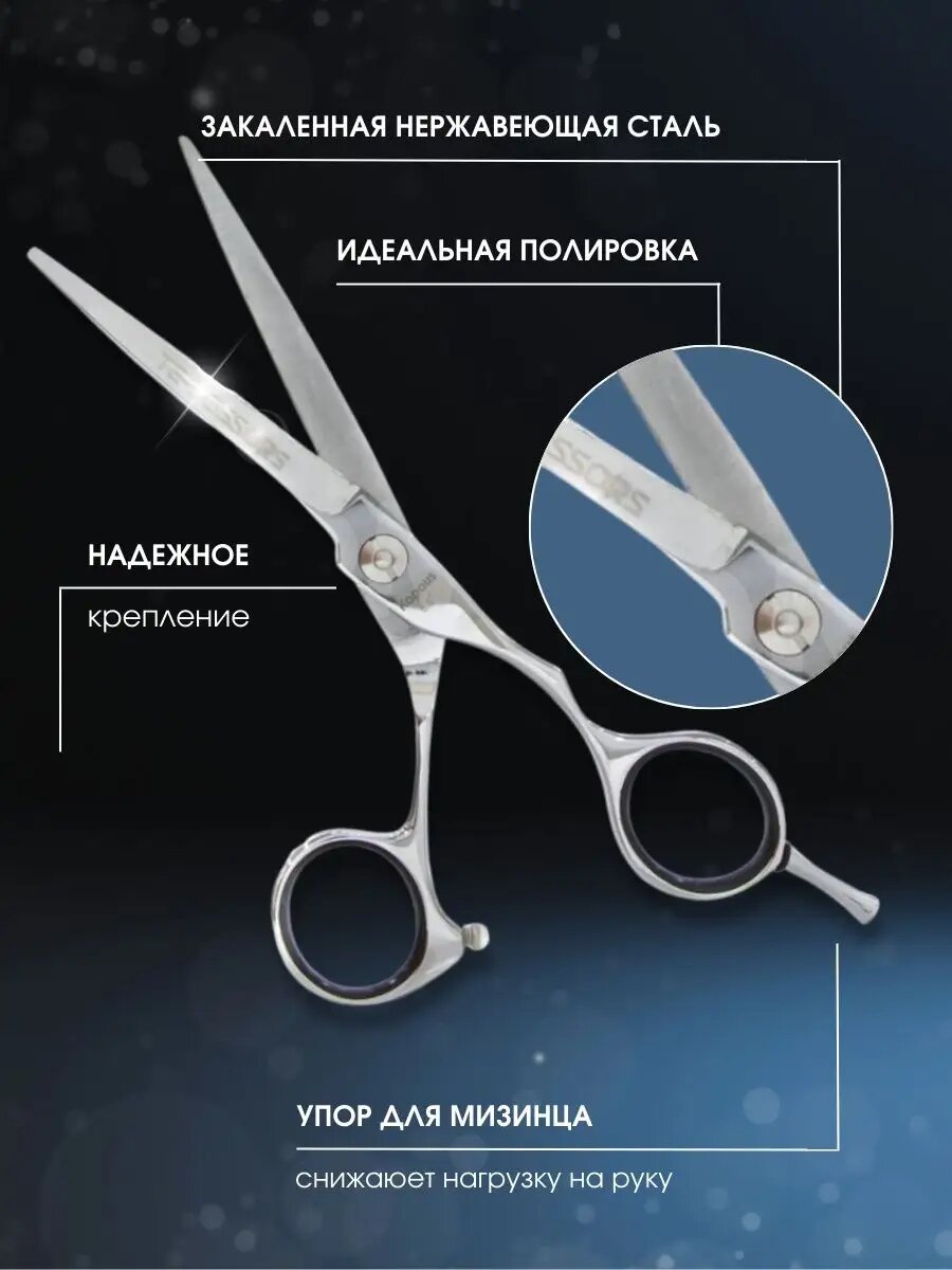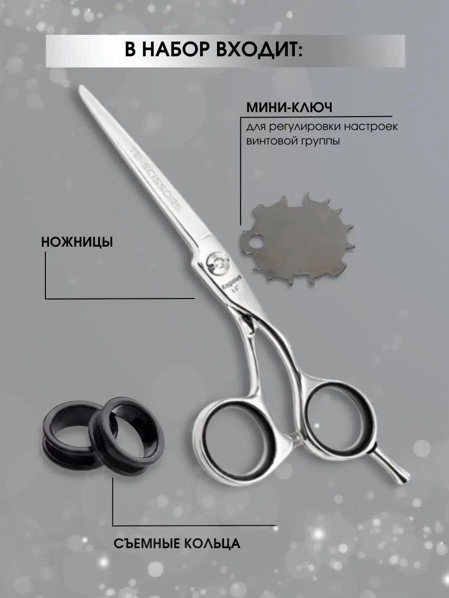 | Минусы: | слетают черные кольца внутри ножниц, нужно докупать резиновые нескользящие |