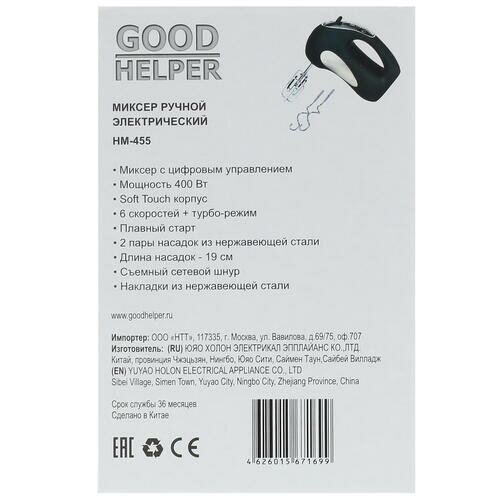 Ручной миксер Goodhelper НМ-455 интересное: