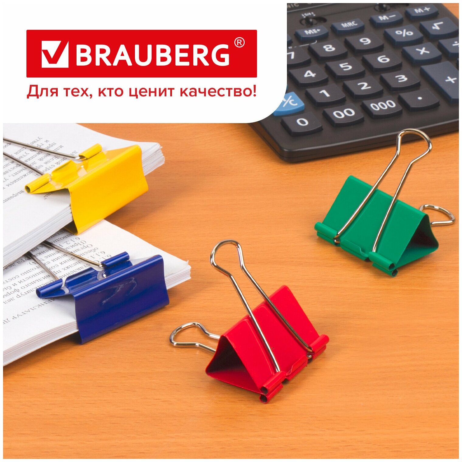 Зажимы для бумаг BRAUBERG, комплект 12 шт., 51 мм, на 230 листов, цветные, картонная коробка, 221131