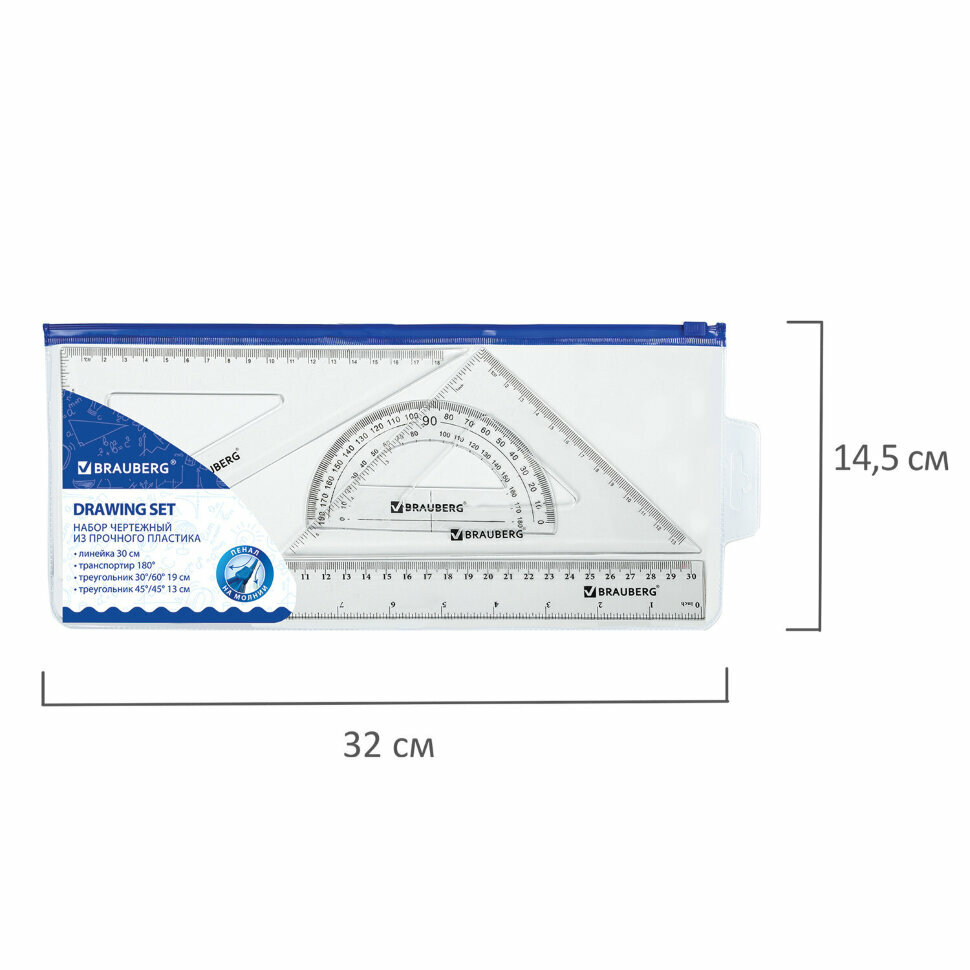 Набор чертежный Brauberg большой (линейка 30 см, 2 угольника, транспортир) (210308)