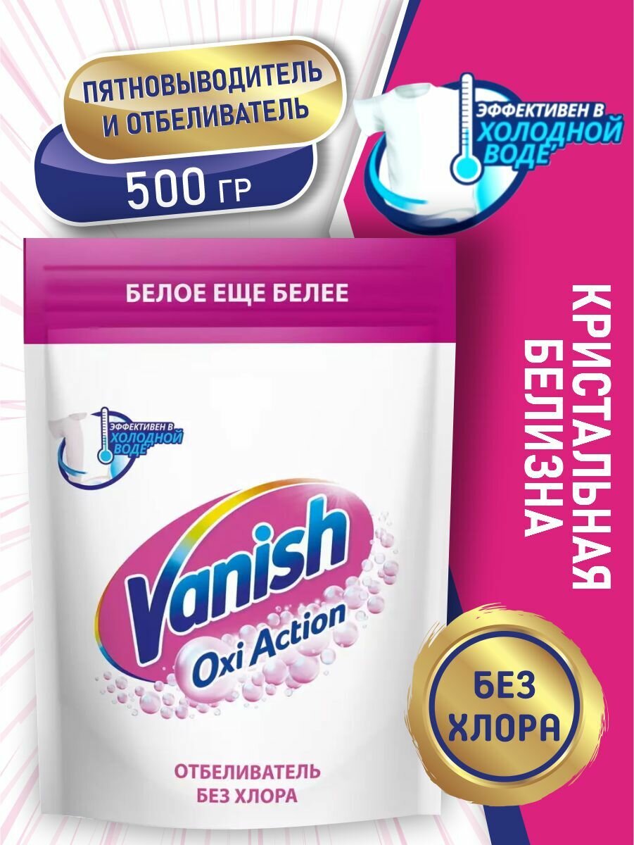 Отбеливатель-пятновыводитель Vanish Oxi Action Кристальная белизна, 500 г 1 упаковка
