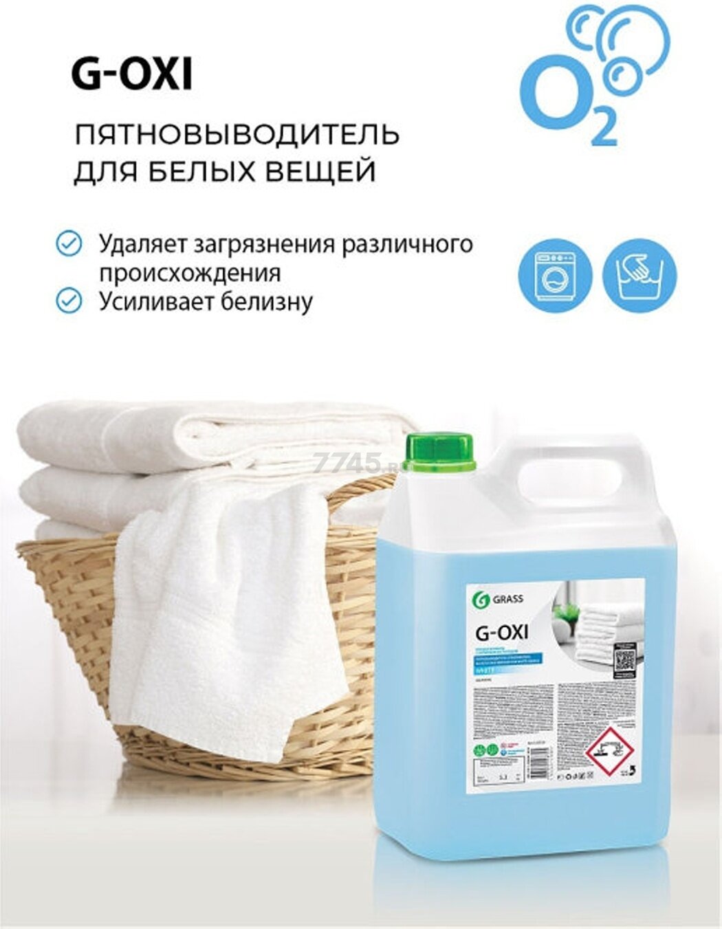 Пятновыводитель Grass G-Oxi для белых вещей, отбеливатель с активным кислородом, жидкость для стирки 5л