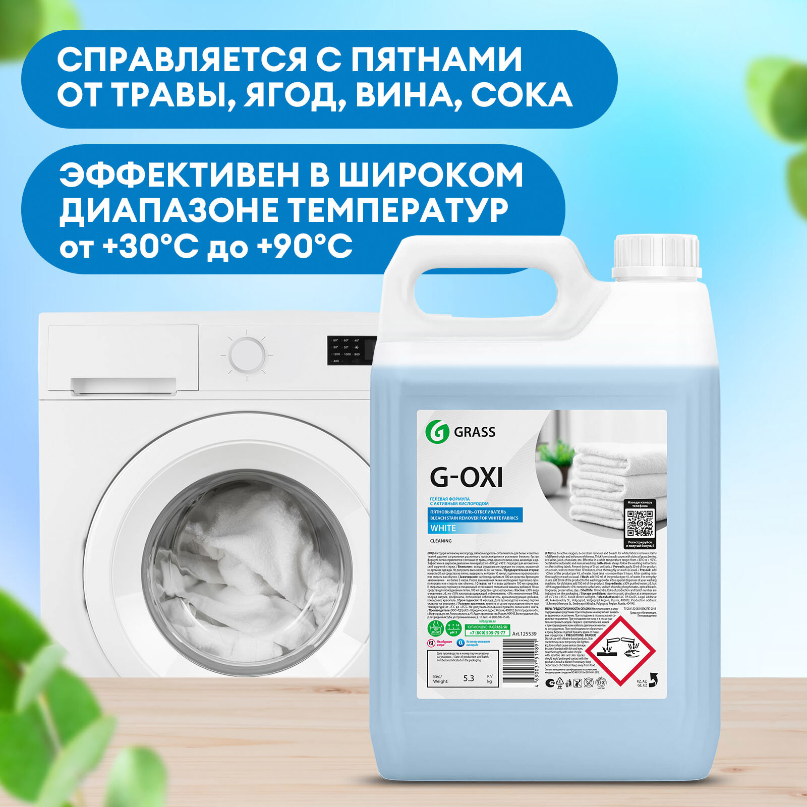 GRASS G-oxi Gel. Пятновыводитель-отбеливатель для белых тканей. Усиливает белизну. От пятен травы, вина, сока, шоколада. 500 мл