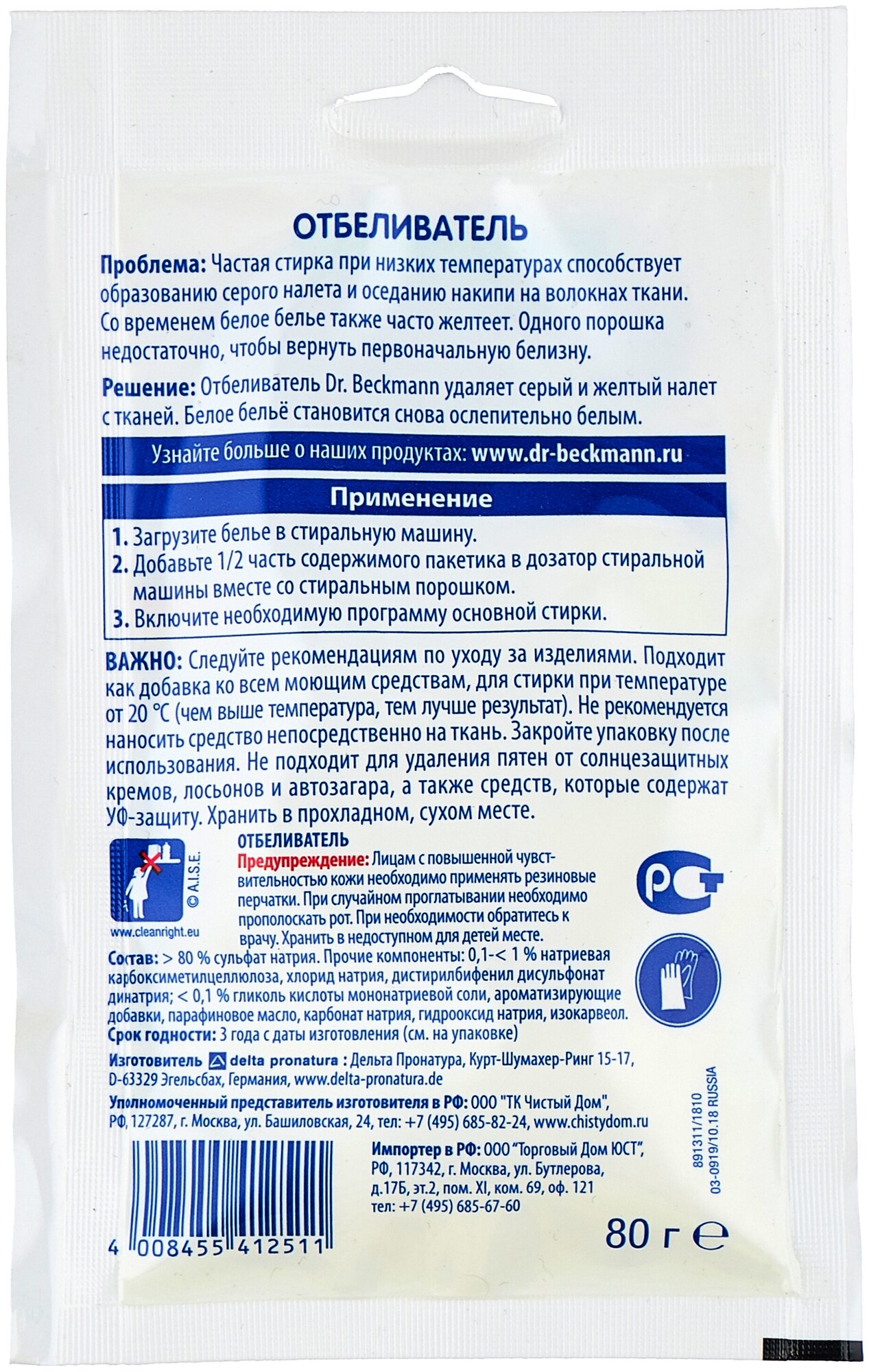 Супер-отбеливатель Dr.beckmann Dr. Beckmann (Доктор Бекманн) в экономичной упаковке, 80 г