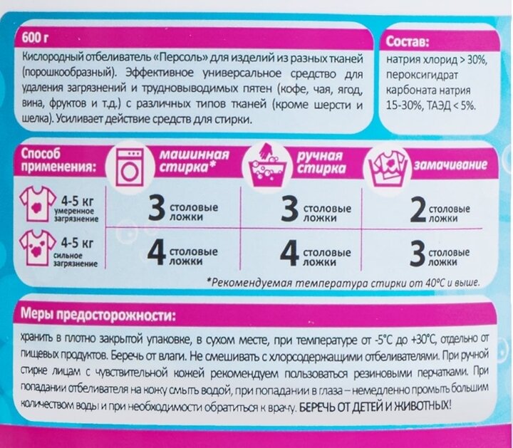 Пятновыводитель кислородный Pure для цветного белья, 600 г интересное: